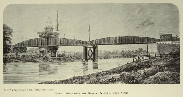 The York to Selby railway line crossed the River Ouse just north of the village by way of a swing bridge built in 1871. Naburn station was closed to passengers in 1953 and to goods in 1964, and in 1983 the Selby Diversion was opened and the line via Naburn was closed and turned into a shared leisure route for pedestrians and cyclists (Sustrans, Route 65).